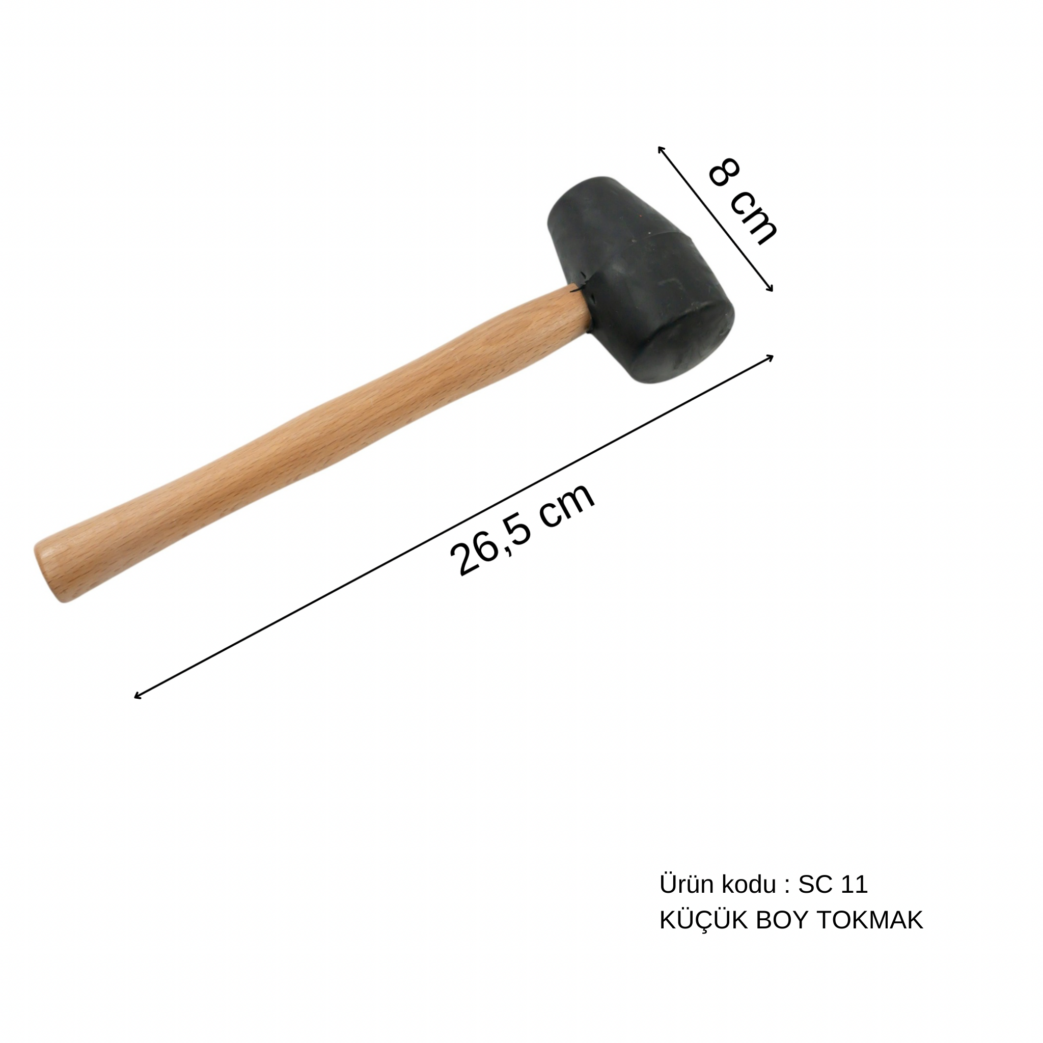 26,5 cm Tahta Saplı Kauçuk Başlıklı Küçük Boy Tokmak, Boyasız Göçük Düzeltme Tokmağı, PDR Tokmak